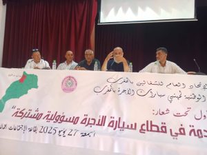 كما لم يفوت السيد الكاتب الوطني الفرصة للتطرق إلى المستجدات التي يعرفها قطاع النقل بواسطة سيارات الأجرة بالمغرب في ظل مجموعة من الاكراهات و المتغيرات ، و التي تفرض على المهنيين تحديات كبرى ، تتطلب مواجهتها توحيد الصفوف و رؤية متبصرة تستشرف الحاضر و المستقبل ، و خوض معارك نضالية و حوارية على كل الجبهات في سبيل انتزاع الحقوق المشروعة و تحسين الحياة الاجتماعية و الاقتصادية و المهنية لابناء هذا القطاع الحيوي .