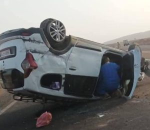 انقلبت سيارة أجرة من الصنف الاول اليوم السبت على مستوى الطريق السريع باتجاه كلميم بسبب انفجار إطار إحدى العجلات، دون تسجيل خسائر في الأرواح.