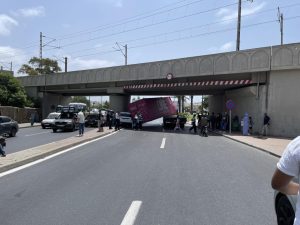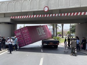 وحسب المعطيات الأولية، فإن الحادث نجم عن عدم احترام الشاحنة للعلو المسموح به تحت القنطرة، ما أدى إلى انزلاق الحاوية وانقلابها فوق سيارة الأجرة التي كانت تمر بالمكان لحظة الحادث.