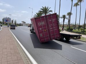 سلا..انقلاب شاحنة تحت قنطرة محكمة الأسرة يتسبب في حادثة سير خطيرة