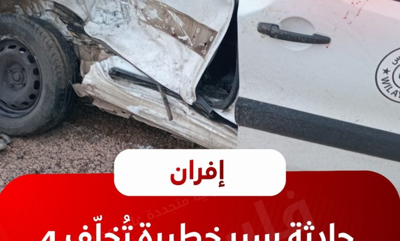 شهدت نواحي إفران حادثة سير مروّعة إثر اصطدام قوي بين سيارة أجرة كبيرة وحافلة سياحية، أسفرت، وفق معطيات أولية، عن وفاة 4 أشخاص وإصابة آخرين بجروح متفاوتة الخطورة.