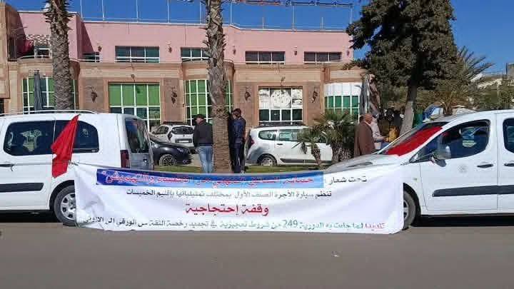 خرج سائقو سيارات الأجرة بإقليم الخميسات للاحتجاج على الشروط التعجيزية لتجديد رخصة الثقة من الورقية إلى الإلكترونية البيومترية بتاطير من التمثيليات النقابية التي ترفض هذه الإجراءات التي تعتبرها غير منطقية وتعيق عملهم مطالبين بتبسيط الإجراءات و إلغاء الشروط التعجيزية و احترام حقوق السائقين .