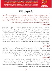 الرئيسية/أخبار النقل/المنظمة الديمقراطية للنقل و اللوجستيك متعددة الوسائط تصدر نداء لتخليد فعاليات فاتح ماي 2023 المنظمة الديمقراطية للنقل و اللوجستيك متعددة الوسائط تصدر نداء لتخليد فعاليات فاتح ماي 2023 طاكسي بريسأبريل 26, 20230 3٬931 أقل من دقيقة شاركها فيسبوك تويتر ماسنجر ماسنجر واتساب مشاركة عبر البريد طباعة طاكسي بريسأبريل 26, 20230 3٬931 أقل من دقيقة شاركها فيسبوك تويتر ماسنجر ماسنجر واتساب مشاركة عبر البريد طباعة