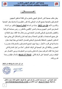 قرر مكتب جمعية النور للسائق المهني بالمغرب تنظيم لقاء دراسي وتحسيسي لفائدة المهنيين حول مستجدات الصندوق الوطني للضمان الإجتماعي وذلك يوم الاحد 28 ماي 2023 على الساعة العاشرة صباحا بمقر الجمعية الكائن بشارع محمد الخامس رقم 41 فوق بنك أفريقيا الطابق الثالث سلوان الناظور .