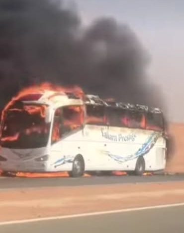 حريق ينشب بحافلة للنقل العمومي بين الطريق الوطنية الرابطة كلميم و طانطان لولا الالطاف الالهية لكانت خسائر في الارواح الحمد لله على سلامة الركاب